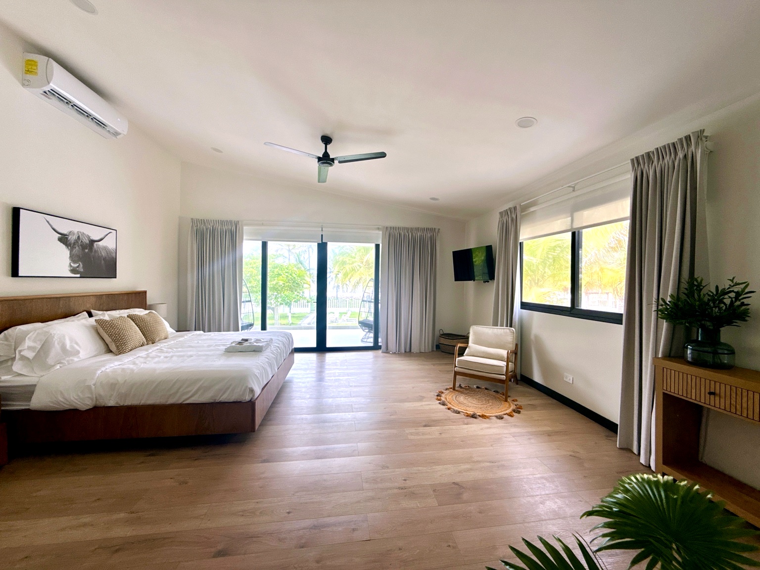 • 3 amplios dormitorios con cama king, todos con aire acondicionado, incluyendo 2 suites frente al mar con terraza privada y muebles lounge